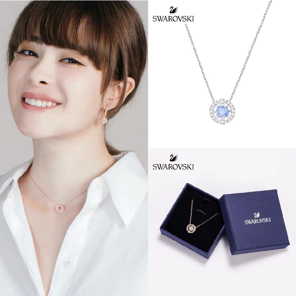 Avoid contact with water. Their swarovski crystals are a staple in almost every fashion house looking to give off that diamond look. Swarovski crystal is a delicate material that must be handled with special care. This timeless necklace is inspired by the idea of a dancing crystal and features a round blue stone inside a 3d cage enhanced with crystal pavé.
