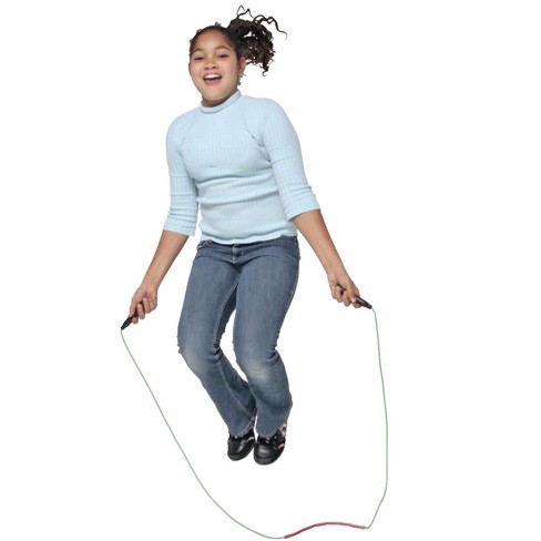 Target segmented jump rope. The champion sports segmented jump rope provides a fun recreational or physical education indoor activity for youth. Each handle has the buyjumpropes logo weighted for use by participants of all ages including kindergarten high school college military units and even many professional football teams. The foam handles will keep your hands comfortable no matter how long you can keep it up. Great for cardio vascular fitness and co ordination it features removable 125g weights in each handle has soft rubber grips and measures 2 7m in length.