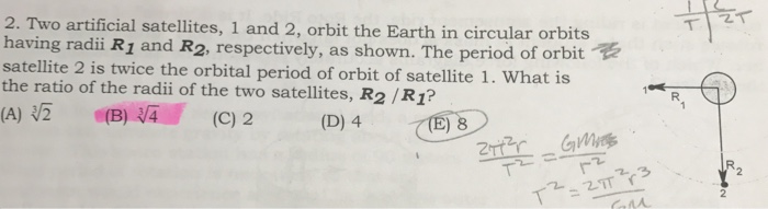 Question 1 two artificial satellites are in circular orbits about the earth. The one with the smaller mass. Two artificial satellites 1 and 2 orbit the earth in circular orbits having radii r 1 and r 2. Which of the two will be moving more slowly in its orbit.